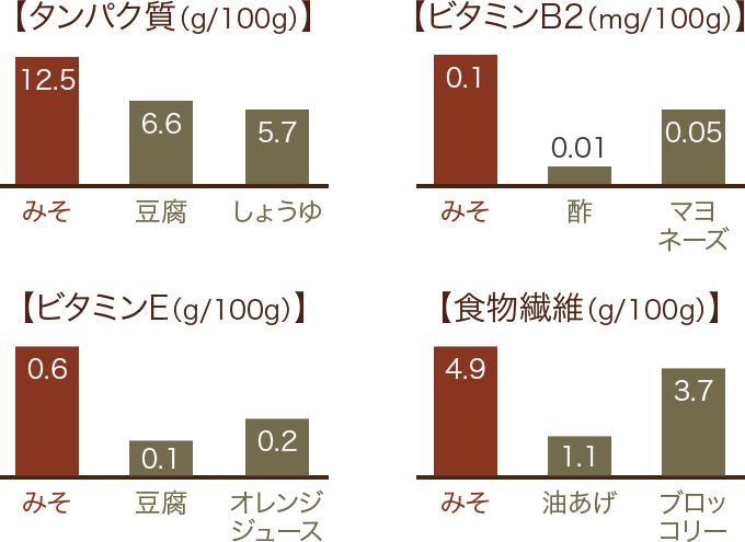 「畑の肉」と呼ばれる大豆を使い、タンパク質やビタミンが豊富、さまざまな料理に応用できるので献立の栄養バランスもアップ。さらに、発酵する際に出る「旨み成分」が料理をおいしくしてくれると、こんなにあるみそのすごい力は見逃せません。