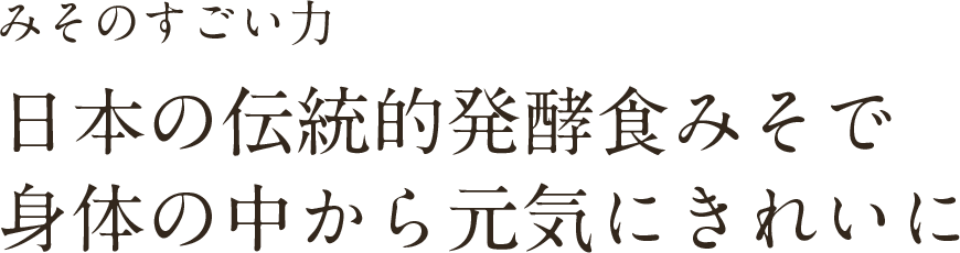 疲労回復効果や血流改善効果があり、コレステロールを下げるレシチンなどの生活習慣病予防に役立つ成分が含まれているみその力を利用すれば、健康で身体の中からきれいになれるはず。まずは、1日1杯のおいしいみそ汁からみそ食生活を楽しんでみませんか。