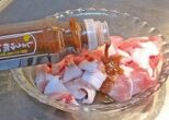 1:豚肉にしょうゆ糀にんにく大さじ1を入れ、混ぜ合わせておく。